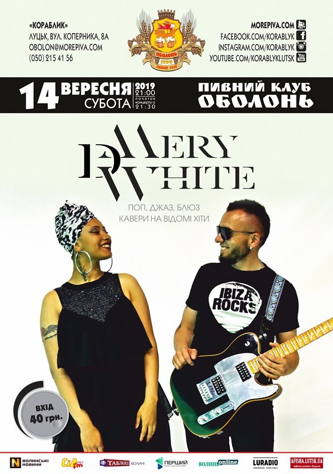 Ретро-фольк квартет «Стара Шуфляда» в пивному клубі «Майдан» | 13 вересняГурт «MERY D WHITE» у пивному клубі «Оболонь» | 14 вересня