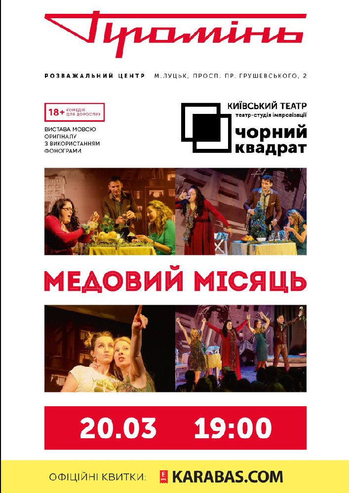 Виступ гурту «Фіолет» у Passage Interdit | 15 березняРетро-фольк квартет «Стара Шухляда» у пивному клубі «Майдан» | 15 березняВистава «Обережно – жінки» у Волинському академічному обласномумузично-драматичному театрі імені Тараса Шевченка | 15 березняМузично-розважальна забава «Меломан» у пивному клубі «Оболонь» | 15 березняЗустріч із Зоєю Казанжи у Passage Interdit | 16 березняВиступ Галини Конах у пивному клубі «Оболонь» | 16 березняЛекція «Історія української фотографії: від 70-х до сучасності» у Музеї сучасного українського мистецтва Корсаків | 16 березняВистава «Циганка Аза» у Волинському академічному обласному музично-драматичному театрі імені Тараса Шевченка | 16 березняКонцерт гурту Sinoptik у пивному клубі «Майдан» | 16 березняВистава «Монодії в червоному» від театру «Гармидер» у Луцькій музичній школі № 1 імені Фридерика Шопена | 17 березняЛісовий цирк у Волинському академічному обласному театрі ляльок | 17 березняВистава «Криза» у Волинському академічному обласному музично-драматичному театрі імені Тараса Шевченка | 17 березняРитмотека у пивному клубі «Оболонь» | 17 березняВистава «Вікентій Прерозумний» у Волинському академічному обласному музично-драматичному театрі імені Тараса Шевченка | 17 березняКонцерт «Frank Sinatra Tribute. Про кохання» в Палаці культури міста Луцька | 17 березняБалет Петра Чайковського «Лебедине озеро» від Львівського національного академічного театру опери та балету імені Соломії Крушельницької у Волинському академічному обласному музично-драматичному театрі імені Тараса Шевченка | 19 березняЗустріч з американським письменником Йоханесом Ліхтманому Passage Interdit | 19 березняВівтоРОК з Анатолієм Вітинським у пивному клубі «Майдан» | 19 березняВистава від театру «Чорний квадрат»«Медовий місяць» у РЦ «Промінь» | 20 березняАкустичний вечір Юрія та Андрія Поліщуків у пивному клубі «Майдан» | 20 березняКонцерт «Зіграй мені мелодію дощу» у Центрі культури та дозвілля СНУ імені Лесі Українки | 21 березня«Жіночий квартал» у РЦ «Промінь» | 21 березняIn ROCK: BEST ROCK & BLUES HITS у пивному клубі «Майдан» | 21 березня