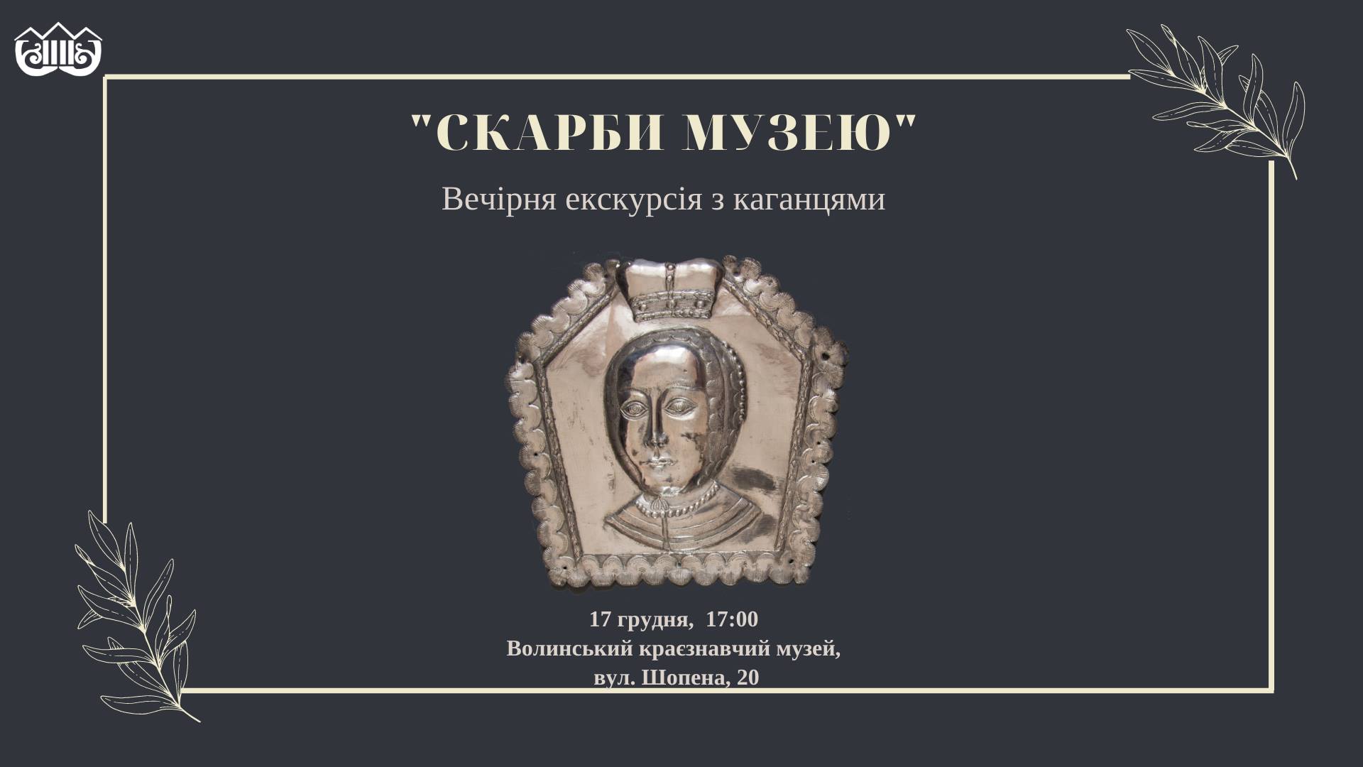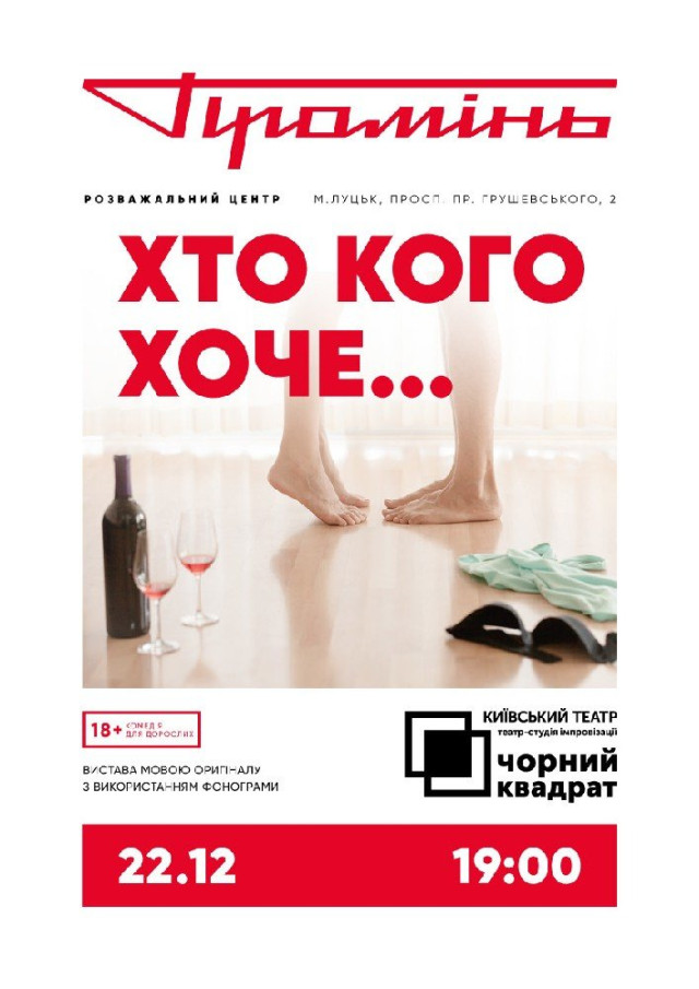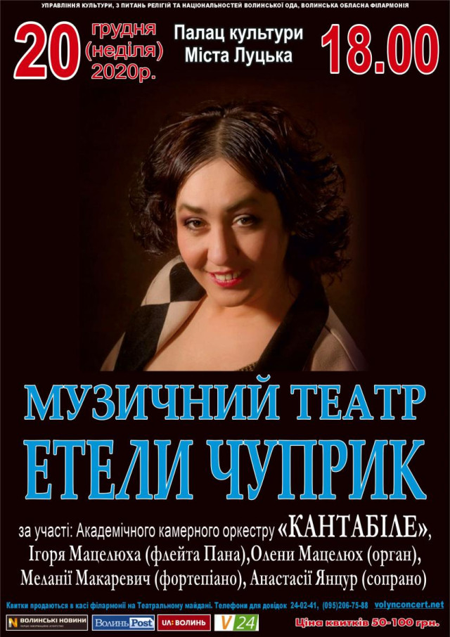 Вечірня екскурсія з каганцями «Скарби музею» у Волинському краєзнавчому музеї | 17 грудняВистава «Коханий нелюб» у Волинському академічному театрі імені Тараса Шевченка | 17 грудняАртем Степанюк і друзі в клубі «Цитра» | 18 грудняГра-читка «2020: реальні історії примарного року!» у Гармидер ангар-stage | 18 грудняВистава «Фрекен Жюлі» у Волинському академічному театрі імені Тараса Шевченка | 18 грудняБлагодійний ярмарок «Резиденція Миколая» у Молодіжному центрі Волині | 18 грудняУрочисте засвічення вогнів головної новорічної ялинки на Театральному майдані | 19 грудняДует «Інша Тиша» у Гармидер ангар-stage | 19 грудняГурт «Без Обмежень» у РЦ «Промінь» | 20 грудняПластичний тренінг «Діалог з тілом» у Гармидер ангар-stage | 20 грудняМузичний театр Етелли Чуприк у Палаці культури міста Луцька | 20 грудняВистава «Попелюшка» у Волинському академічному театрі імені Тараса Шевченка | 20 грудняФайна гутірка «Медіакультура: як не потонути в океані фейків та популізму». Онлайн-трансляція з Гармидер ангар-stage |20 грудня«Казка про найбільшу мрію» у Гармидер ангар-stage | 21 грудняВолинський народний хор у Волинському академічному театрі імені Тараса Шевченка | 21, 25 грудняТеатр «Чорний квадрат» із виставою «Хто кого хоче?..» у РЦ «Промінь» | 22 грудняLutsk Fashion Weekend Kids 2020 в Музеї сучасного українського мистецтва Корсаків | 22 грудня