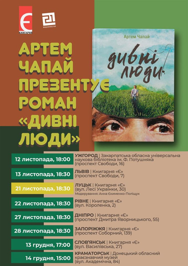 Мега гастро вечеря з президентом Асоціації шеф-кухарів України Ігорем Брагіним за адресою: вулиця Івана Франка, 61 | 21 листопада«Дивні люди» і Артем Чапай у книгарні «Є» | 21 листопадаДовгоочікуване відкриття Олдскула разом з Ukiez у PubOldskull | 21 листопадаКонцерт Jamala у Волинському академічному обласному музично-драматичному театрі імені Тараса Шевченка | 22 листопадаВистава «Замовляю любов» у Волинському академічному обласному музично-драматичному театрі імені Тараса Шевченка | 22 листопада«Какофонія Донбасу». Фільм-відкриття Docudays UA у Палаці культури міста Луцька | 22 листопадаТворча зустріч з режисером фільму «З України до Голлівуду» у Adrenalin City | 22 листопадаТанці на палубi Кораблика: вiд 60-х i до сьогоднi в пивному клубі «Оболонь» | 22 листопадаExclusive night. Andrew Omelchenko у клубі «Цитра» | 22 листопадаОсінній бал 2019 для дітей та молоді з інвалідністю в Adrenalin City | 22 листопадаВистава «Присмерк» у Волинському академічному обласному музично-драматичному театрі імені Тараса Шевченка | 23 листопадаОлексій Лазарєв & Руслана Моклиця у клубі «Цитра» | 23 листопадаStelsi (Hutzul-dance-punk) у пивному клубі «Майдан» | 23 листопада«Queen Forever» Hardy Orchestrа у РЦ «Промінь» | 24 листопадаВистава «Мазайло» від театру-студії «Гармидер» у КМЦ «Красне» | 24 листопадаВечір класики від Мікаеля Гюлазяна у клубі «Цитра» | 24 листопадаВистава «Лис Микита» у Волинському академічному обласному музично-драматичному театрі імені Тараса Шевченка | 24 листопадаГурт «ДЕВ’ЯТИЙ х DELTAPLAN» у пивному клубі «Оболонь» | 24 листопадаПрезентація роману Віталія Клімчука «Подвійний стандарт» у книгарні «Є» | 24 листопадаВистава «Лісова пісня» у Волинському академічному обласному музично-драматичному театрі імені Тараса Шевченка | 24 листопадаКонцерт «О БЛАГОСЛОВИ, СОЗДАТЕЛЮ!» у кафедральному костелі Святих Апостолів Петра і Павла | 24 листопадаВистава «Попелюшка» у Волинському академічному обласному театрі ляльок | 24 листопадаЛяльки #LOLSHOW у Волинському академічному обласному музично-драматичному театрі імені Тараса Шевченка | 27 листопадаLa Piano. Вечір ліричної музики у клубі «Цитра» | 27 листопадаВистава «Шрами» у Волинському академічному обласному театрі ляльок | 27 листопадаЦирк «Олімп» біля ТЦ «Там-Там» | 27–28 листопада