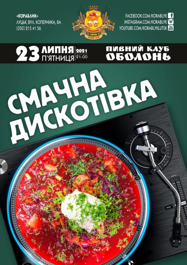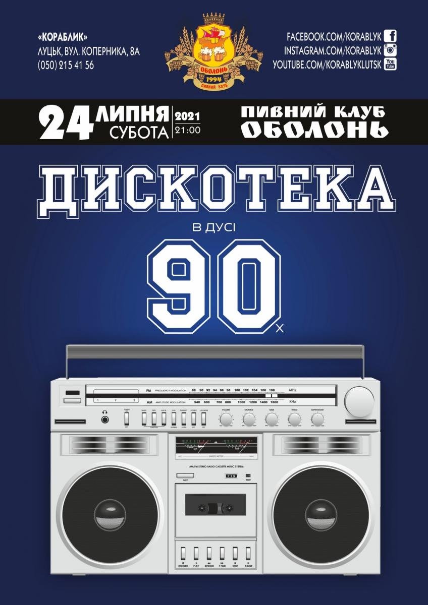 «Смачна дискотівка» в пивному клубі «Оболонь» | 23 липняТріо «Мар’яничі» у закладі «Тераса Парк» (Центральна алея в парку) | 23 липняВідкриття виставкового проєкту Владислава Краснощока «Красиве» в Музеї сучасного українського мистецтва Корсаків | 23 липняMakis fest у ресторані Makis | 24 липня«Дискотека 90-х» у пивному клубі «Оболонь» | 24 липняВистава «Гусеня» у Волинському обласному театрі ляльок | 24 липняКараоке-дискотека у Boremel Hills | 24 липняRAP CAMP VOLYN у Молодіжному центрі Волині | 24, 31 липня«РадіоХіти. Танці» в пивному клубі «Оболонь» | 25 липняВідкриття історико-культурного екомаршруту «Волинський спадок» Цумань – Цуманська пуща – Деражне. Виїзд з Луцька від головного корпусу ВНУ (зі сторони вулиці Степана Бандери) | 25 липняВечір поезії Іздрика в Passage Interdit | 30 липняСвяткування 5-річчя закладу Zagorod | 30 липняФестиваль «Торчинський ярмарок» у Торчині | 31 липняDISCO SUPER STAR-90 у РЦ «Промінь» | 31 липня