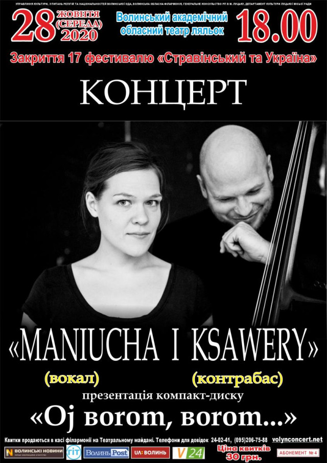 Fuckup Nights Lutsk birthday edition у ZAVIDE | 22 жовтняНове українське кіно в Луцьку «Мої думки тихі» в кінотеатрі Multiplex | 23 жовтняВистава «Обережно – жінки» у Волинському академічному театрі імені Тараса Шевченка | 23 жовтняАрт-терапевтичний майстер-клас у готелі «Світязь» | 23 жовтняHand made нетворкінг: канали просування в інтернеті в Сирному королівстві | 23 жовтняВистава «Коханий нелюб» у Волинському академічному театрі імені Тараса Шевченка | 24 жовтняВиставка скульптур Альбіни Сафонової та Олега Цьося «Українці» у Волинському краєзнавчому музеї | 24 жовтняPolissian Witchcraft Vol.1 у ZAVIDE | 24 жовтняМультимедійна вистава «Кострубізми. Кумановський» від театру «Гармидер» у «Гармидер ангар-stage | 24 жовтняНічний кіноперегляд у Молодіжному центрі Волині | 24 жовтняКомандний чемпіонат Волинської області з вільної піраміди у George’s Club | 24 жовтняВідзначення третьої річниці мистецького проєкту «Драбина» на Театральному майдані | 24 жовтняВистава «Номер 13 (Неймовірні пригоди в готелі класу LUX» у Волинському академічному театрі імені Тараса Шевченка | 25 жовтняПерший великий концерт «Вільного стендапу» в Луцьку в «Гармидер ангар-stage | 25 жовтняВистава «Піколетто» у Волинському академічному театрі імені Тараса Шевченка | 25 жовтняОсіння дебатна школа в Центрі національно-патріотичного виховання дітей та молоді в місті Луцьку | 27 жовтняЗакриття 17 фестивалю «Стравінський та Україна» у Волинському академічному театрі ляльок | 28 жовтня
