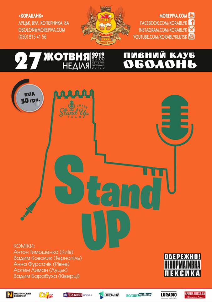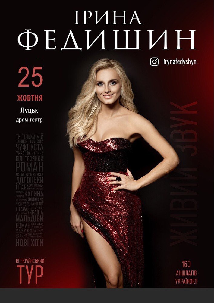 XIV ДНІ Польського КІНО в РЦ «Промінь» | 24–28 жовтняІрина Федишин у Волинському академічному обласному театрі імені Тараса Шевченка | 25 жовтняСаунд-алхімія: Ivan Tkalenko, електробандура в клубі «Цитра» | 25 жовтняВистава «Аншлаг любові» у Волинському академічному обласному театрі імені Тараса Шевченка | 25 жовтняТанцi на палубi Кораблика: вiд 60-х i до сьогоднi в пивному клубі «Оболонь» | 25 жовтняВистава «Обережно – жінки» у Волинському академічному обласному театрі імені Тараса Шевченка | 25 жовтняJAH KHALIB у РЦ «Промінь»| 26 жовтняПроєкт «Музика мовлення» у пабі «Лафройг» | 26 жовтняOld School. Перевiренi часом хiтяри в пивному клубі «Оболонь» | 26 жовтняВистава «Мазайло» від театру-студії «Гармидер» у КМЦ «Красне» | 27 жовтняМузика та візуалізація від Андрія Куманського у клубі «Цитра» | 27 жовтняВистава «Солом’яний бичок» у Волинському академічному обласному театрі ляльок | 27 жовтняВистава «Лис Микита» у Волинському академічному обласному театрі імені Тараса Шевченка | 27 жовтняSTAND UP вечiрка у пивному клубі «Оболонь» | 27 жовтняВистава «Кайдаші» у Волинському академічному обласному театрі імені Тараса Шевченка | 27 жовтняВистава «Лісова пісня» у Волинському академічному обласному театрі імені Тараса Шевченка | 27 жовтняНЕАНГЕЛИ у РЦ «Промінь» | 29 жовтня«Випадок у Готелі Дю Комерс» Дуже смішна комедія на 2 дії у Волинському академічному обласному театрі імені Тараса Шевченка | 29 жовтняLadies Night у Волинському академічному обласному театрі імені Тараса Шевченка | 30 жовтняDaniel De Vita блюзмен з Аргентини у клубі «Цитра» | 31 жовтня