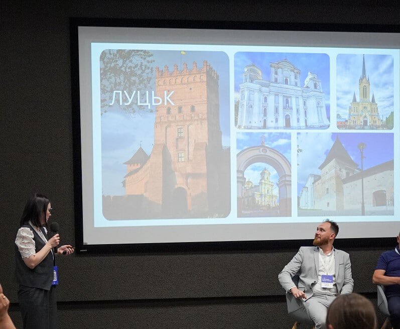Анна Вінцюк презентувала на заході досвід реалізації міжнародних проєктів у Луцькій громаді та розповіла про співпрацю з міжнародними партнерами.