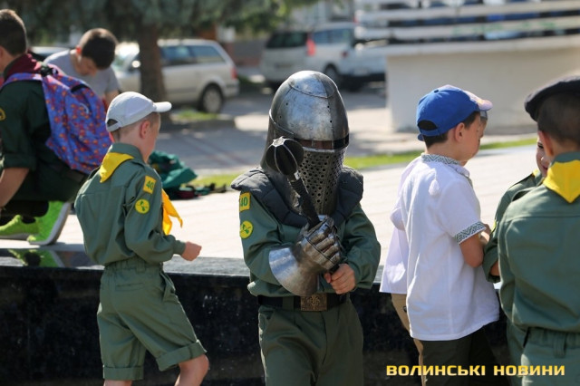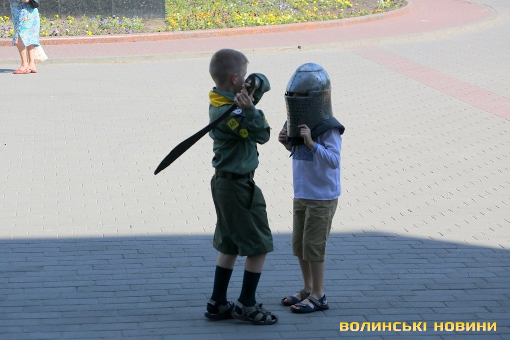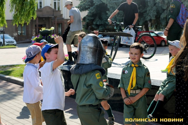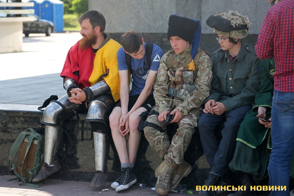 Окрім того, відбулася реконструкція образів українських воїнів різних історичних періодів. Так, маленькі лучани охоче фотографувалися з козаком, воїнами УПА та АТО. До того ж, вони радо приміряли обладунки та вимахували зброєю.Після квесту, в якому молодь перевіряла свої знання про видатних українців, на Театральному майдані маленькі пластуни організували патріотичний флешмоб – вони заспівали композицію сестер Тельнюк «Рядок з автобіографії».