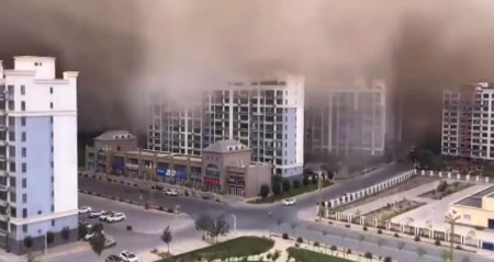 За даними видання, сильна піщана буря з хмарами пилу висотою не менше 100 метрів викликала хаос в стародавньому місті Дуньхуан на північному заході Китаю.