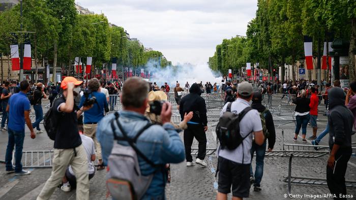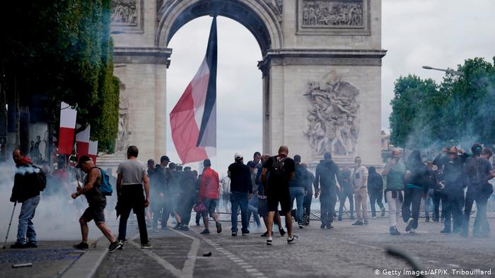 Після параду на Єлисейських полях окремі групи активістів намагалися звести барикади, підпалили смітники і вступили у сутички з поліцією.