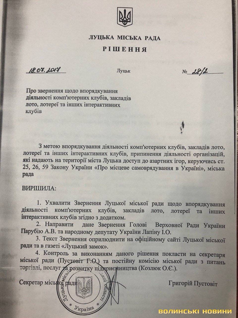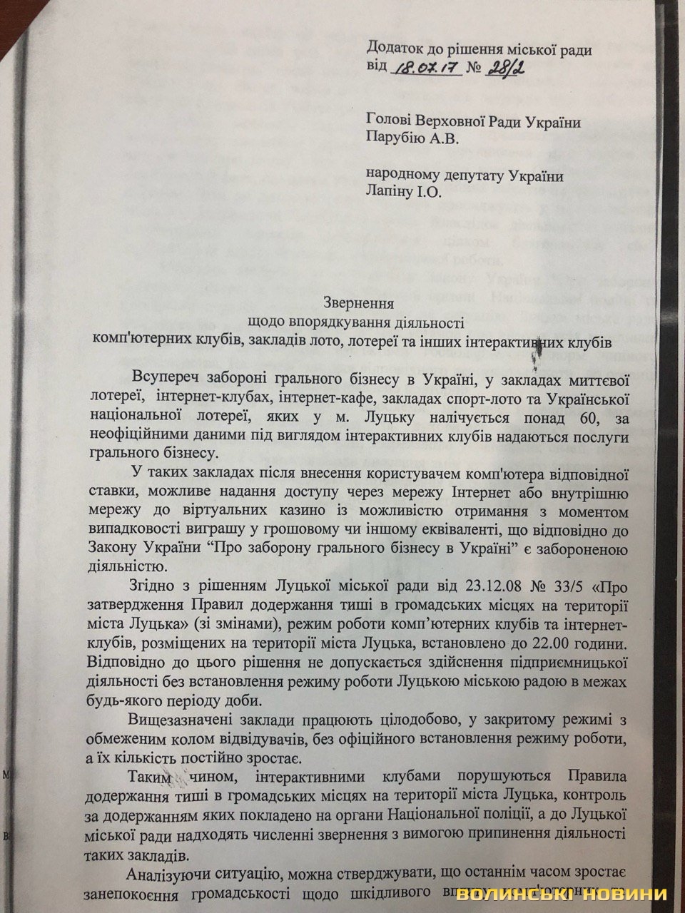 ЧИТАТИ ЩЕ: КАЗИНО КОЛИШНІМ НЕ БУВАЄ. ЯК ПРАЦЮЄ ГРАЛЬНИЙ БІЗНЕС ЛУЦЬКОГО ДЕПУТАТА ПОКРОВСЬКОГО
