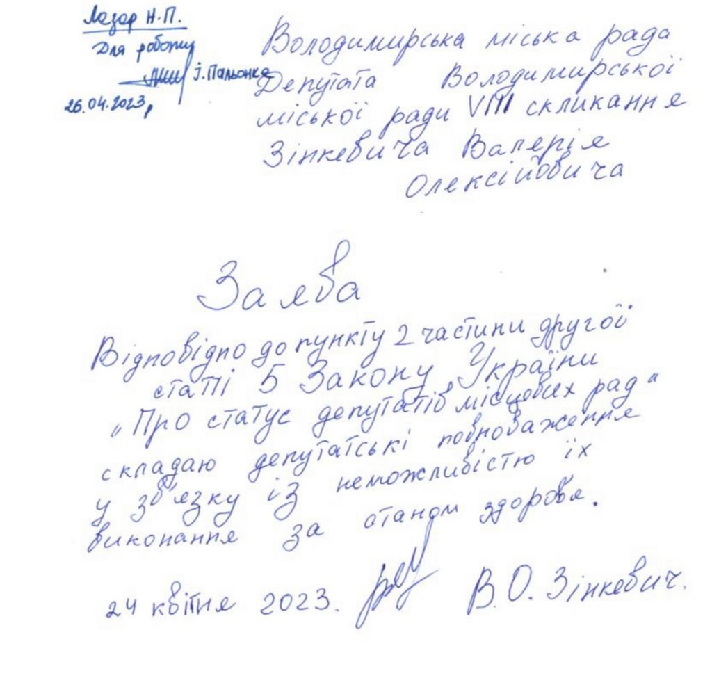 Депутат Володимирської міськради Валерій Зінкевич склав повноваження
