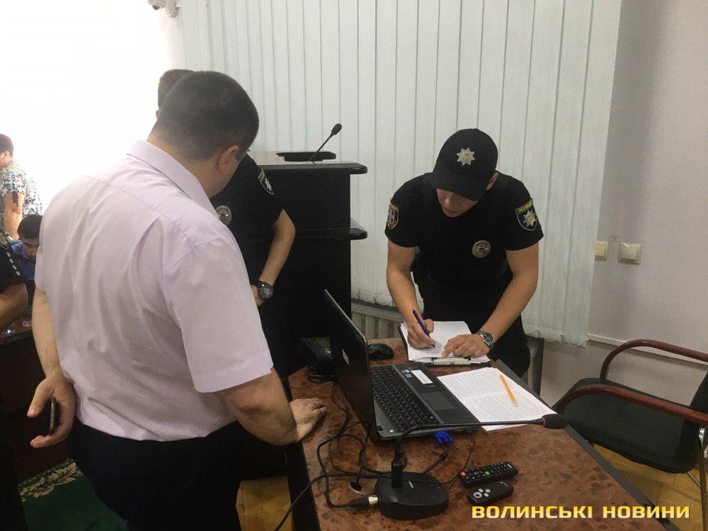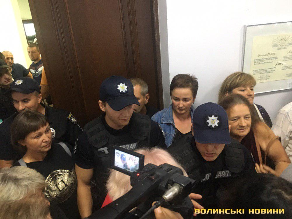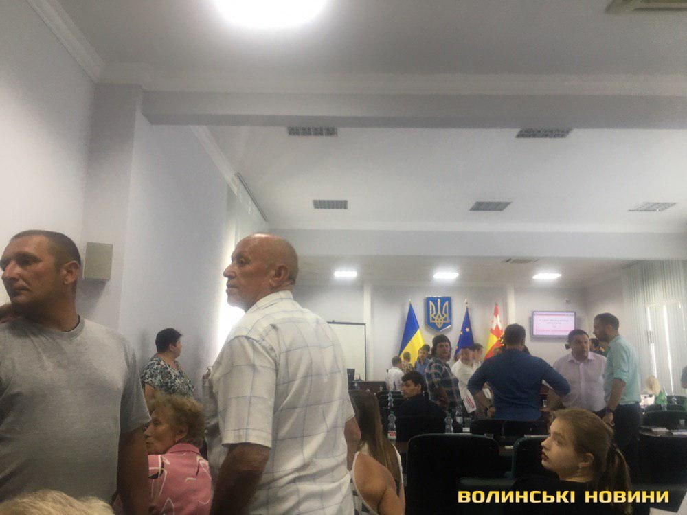 Також у міськраді з’явилися представник ТОРу. Заступнику міського голови Костянтину Петрочуку перекрили дорогу до його кабінету. З його слів, цим йому створили перешкоду в русі, тому він написав відповідну заяву в поліцію.В залі присутній і новопризначений очільник патрульної поліції Волині Андрій Крутень, який спілкується з місцевими мешканцями.