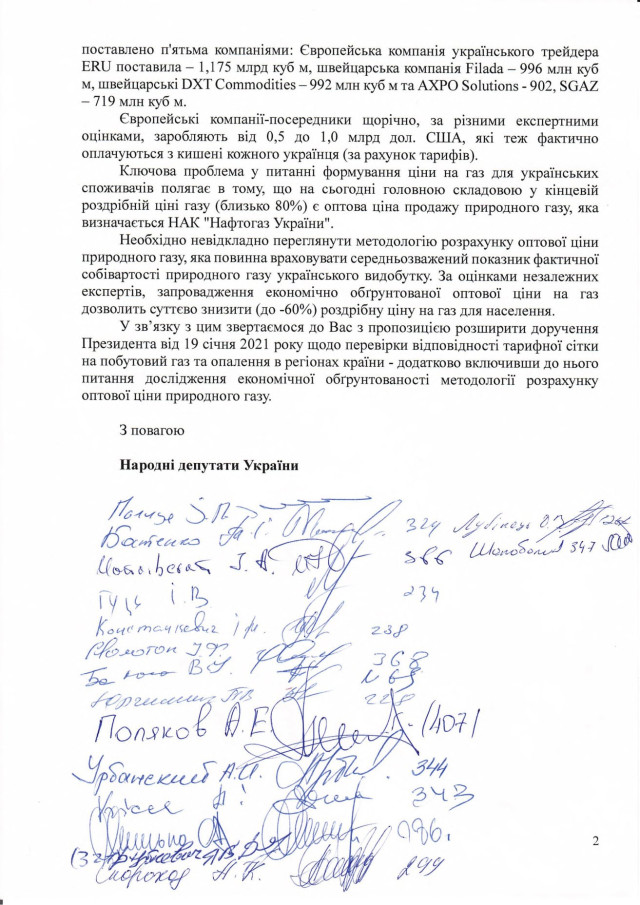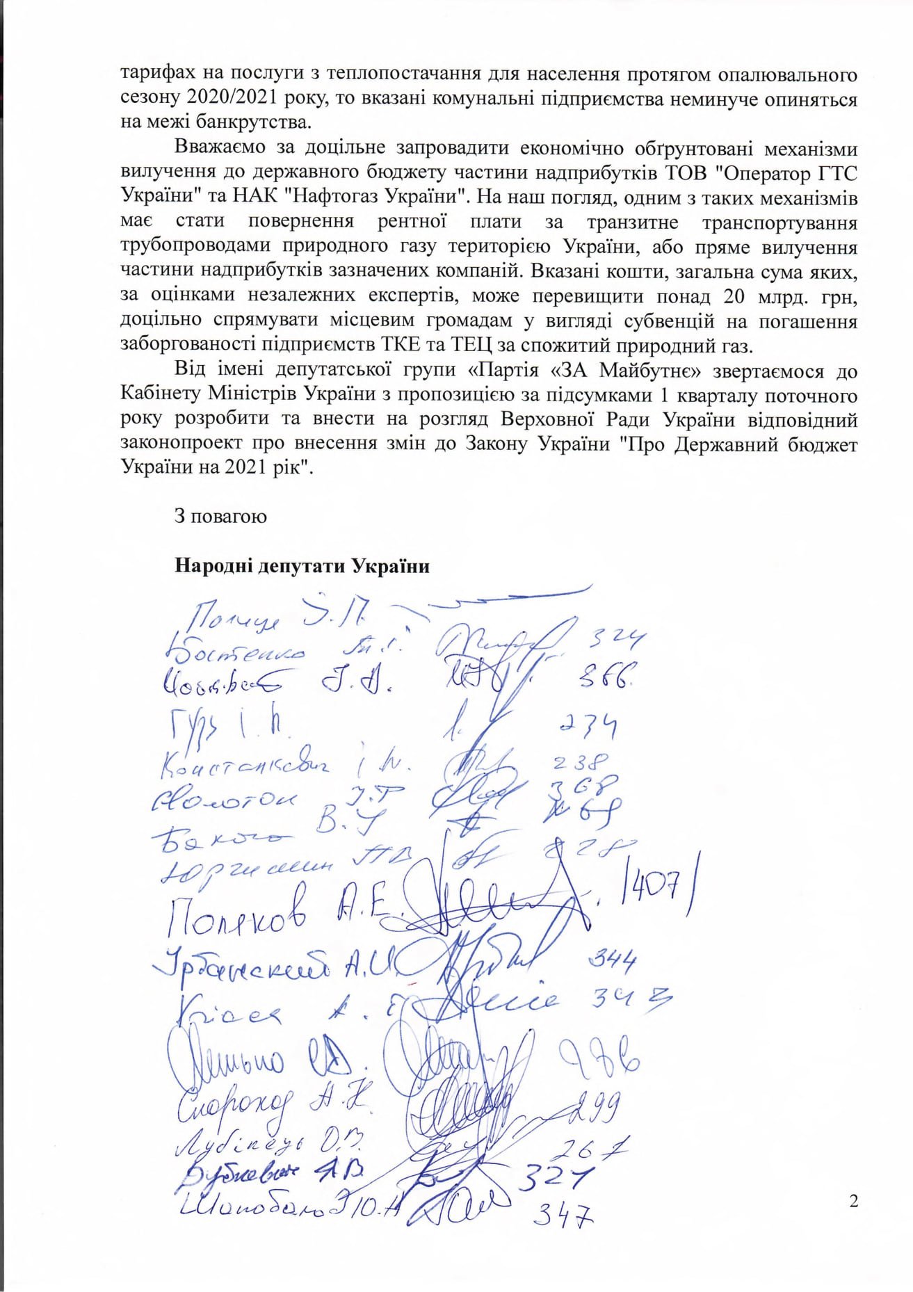 Депутати від «ЗА Майбутнє» запропонували президенту й уряду, як знизити ціну на газ