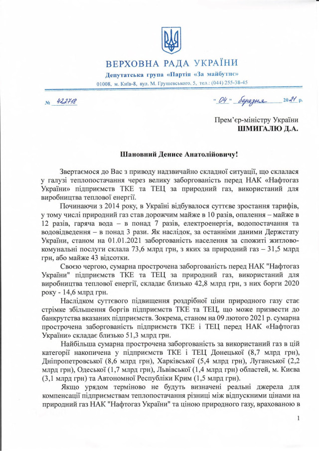 Читати ще: Ціна завищена щонайменше на 60%: «ЗА Майбутнє» вимагає переглянути тариф на газ