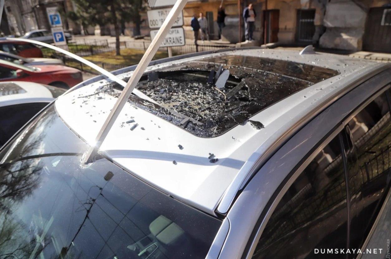 На Великій Арнаутській вітер відірвав фрагмент балкона, а на Маразліївській шматок ліпнини, що відвалився від будинку, впав на автомобіль Hyundai Sonata. Водій був у салоні, але не постраждав. Пошкоджено лобове скло.