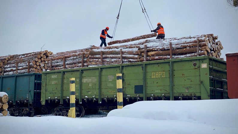 Перед відправкою на складі лісгоспу робітники завантажили 180 кубометрів деревини на вагони. Роботи тривали кілька днів.