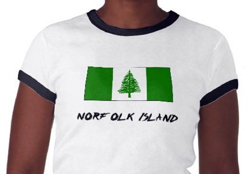 При першому погляді на прапор острова Норфолк (розташований у Тихому океані на схід від Австралії і є її зовнішньою самокерованою територією) виникає стійка асоціація з прапором Канади: такі самі кольорові смуги по краях, таке саме біле поле посередині, а на ньому, власне, головний символ території. Ось тільки на відміну від канадського кленового листка, на Норфолкському стягу зображено ціле дерево ‒ силует місцевої сосни, що росте тільки на цьому острові. Варто відзначити, що і зелені поля по краях прапора також символізують багату рослинність острова.
