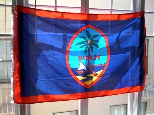 Прапор Гуама (один з Маріанських островів) являє собою синє полотнище, облямоване червоним. І згадана синява символізує не що інше, як Тихий океан, в якому загубився острів. Червона ж облямівка прапора символізує кров, пролиту місцевими жителями під час японської та іспанської окупацій. Основна композиція прапора ‒ без червоної «рамки» ‒ була затверджена 4 липня 1917 року. Сучасний же варіант з´явився в 1948 році.