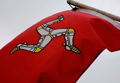 Таким можна сміливо назвати прапор острова Мен (розташований в Ірландському морі між Англією, Шотландією та Ірландією, є коронним володінням Британської корони). Він представлений червоним прямокутним полотнищем, у центрі якого розташований національний символ трискеліон - три ноги, що біжать, з´єднані разом у формі «зірки». Символ «той, що ходить на трьох ногах» (так «трискеліон» перекладається з грецької) вважається одним із найдревніших символів, відомих людству. Його піктограми були знайдені в доісторичних печерах північної Італії і на грецьких вазах і монетах VI ‒ VIII ст. до н.е. Також його шанують норвежці та сицілійці.