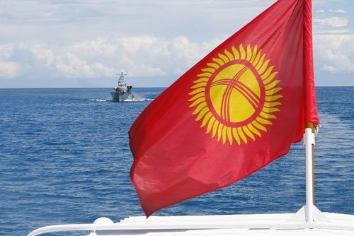 Державний прапор Киргизстану (затверджений 3 березня 1992 року), згідно з його офіційним описом, являє собою полотнище червоного кольору, в центрі якого розміщено круглий сонячний диск, від якого рівномірно розходяться сорок променів золотистого кольору. Червона однокольорність прапора символізує доблесть і сміливість, а золоте сонце, що купається в своїх променях, уособлює спокій і багатство. Що ж до сорока променів, об´єднаних у коло, то вони позначають об´єднання сорока древніх племен в єдиний тепер Киргизстан.