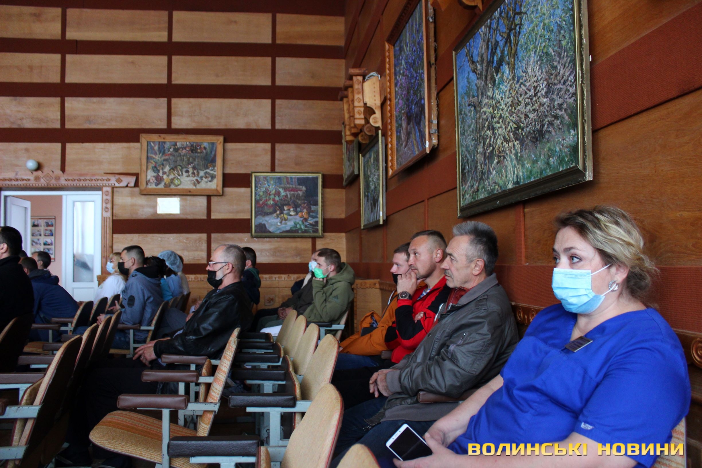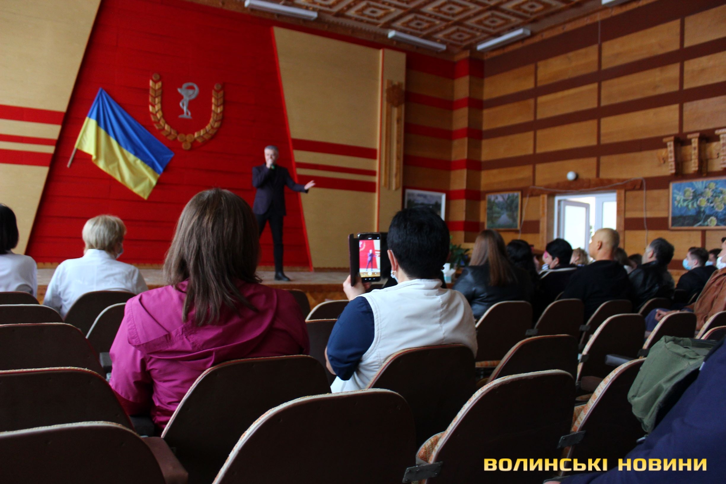 «Минулі роки у нас була ціла програма, в рамках якої ми возили наших бійців на різні культурні заходи, на концерти, вистави, але у зв’язку з карантином, її довелося згорнути, – розповідає керівниця Волинського обласного госпіталю для ветеранів війни Тетяна Масікова. – Хлопцям дуже важливі такі заходи, вони хочуть, щоб їх пам’ятали. Їм дуже приємно коли до приходять відвідувачі, коли заходять діти і згадують про їх подвиг».Цього дня у госпіталь приїхав і керівник волонтерського руху «Меценати для солдата» Руслан Теліпський, який вже не перший рік допомагає бійцям, їх родинам, медзакладам, у яких ставлять на ноги ветеранів. Цього разу він теж приїхав не з порожніми руками: привіз бинти, пластирі, підгузники. Адже серед пацієнтів госпіталю є й лежачі хворі, які потребують тривалого лікування. Тож він побажав усім найперше здоров’я, бо всім ще треба докласти зусиль до перемоги.«Хочемо символічно вклонитися нашим захисникам і подякувати тим, хто ставить їх на ноги. Адже ми всі в одному човні, який називається «Україна». І залежно від того, що ми можемо зробити, наше майбутнє покоління буде ще краще розбудовувати нашу країну. Ці хлопці взяли на свої плечі відповідальну місію – захищати країну зі зброєю в руках. Не кожен це може зробити. Тому що можемо – ми робимо, ми завжди будемо вас підтримувати і хочемо щоб ви завжди були здорові, веселі, щасливі, бо нам треба ще в Кремлі гарно посвяткувати», – звернувся він до присутніх.