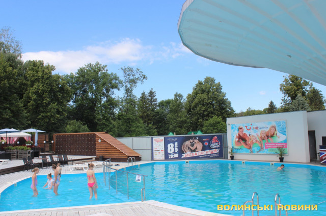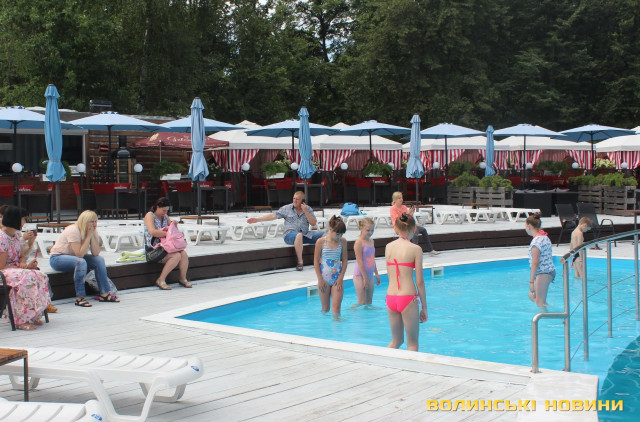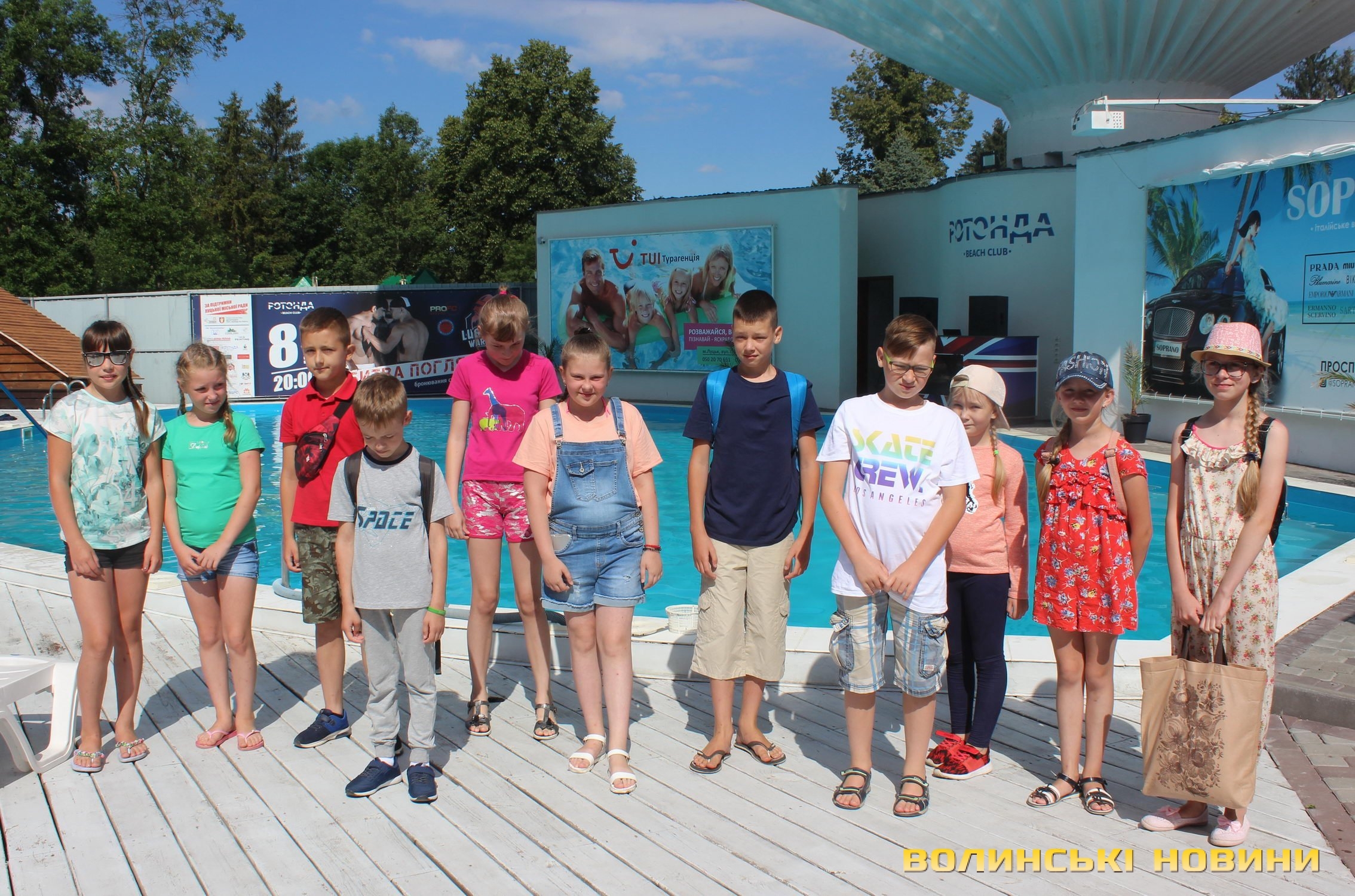 Цієї середи, 3 липня, біля басейну відпочивали діти учасників військових дій на сході України.Як розповіла в коментарі Інформаційному агентству Волинські Новини головна спеціалістка відділу соціальної роботи управління соціальних служб для сім’ї, дітей та молоді Любов Фрадинська, ініціатором заходів виступив відпочинковий комплекс.