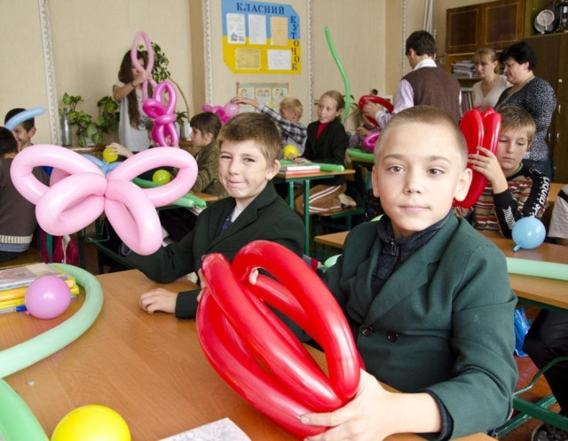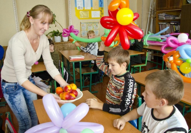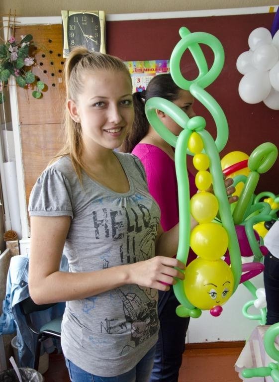 Напередодні свята волонтери прикрасили клас різнокольоровими надувними кульками, з яких вони зробили різні фігурки : веселки, квіточки та сонечко.