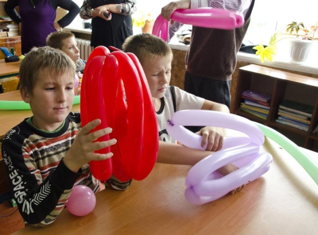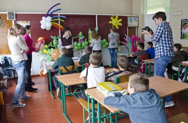 Під час свята п’ятикласникам показували, як з кульки робити квітку. Потім усі разом прикрашали імпровізований город з овочами зробленими власноруч квітами. До цих квітів волонтери заздалегідь зробили черв’ячків з кульок, і роздали їх як доповнення до дитячих виробів.