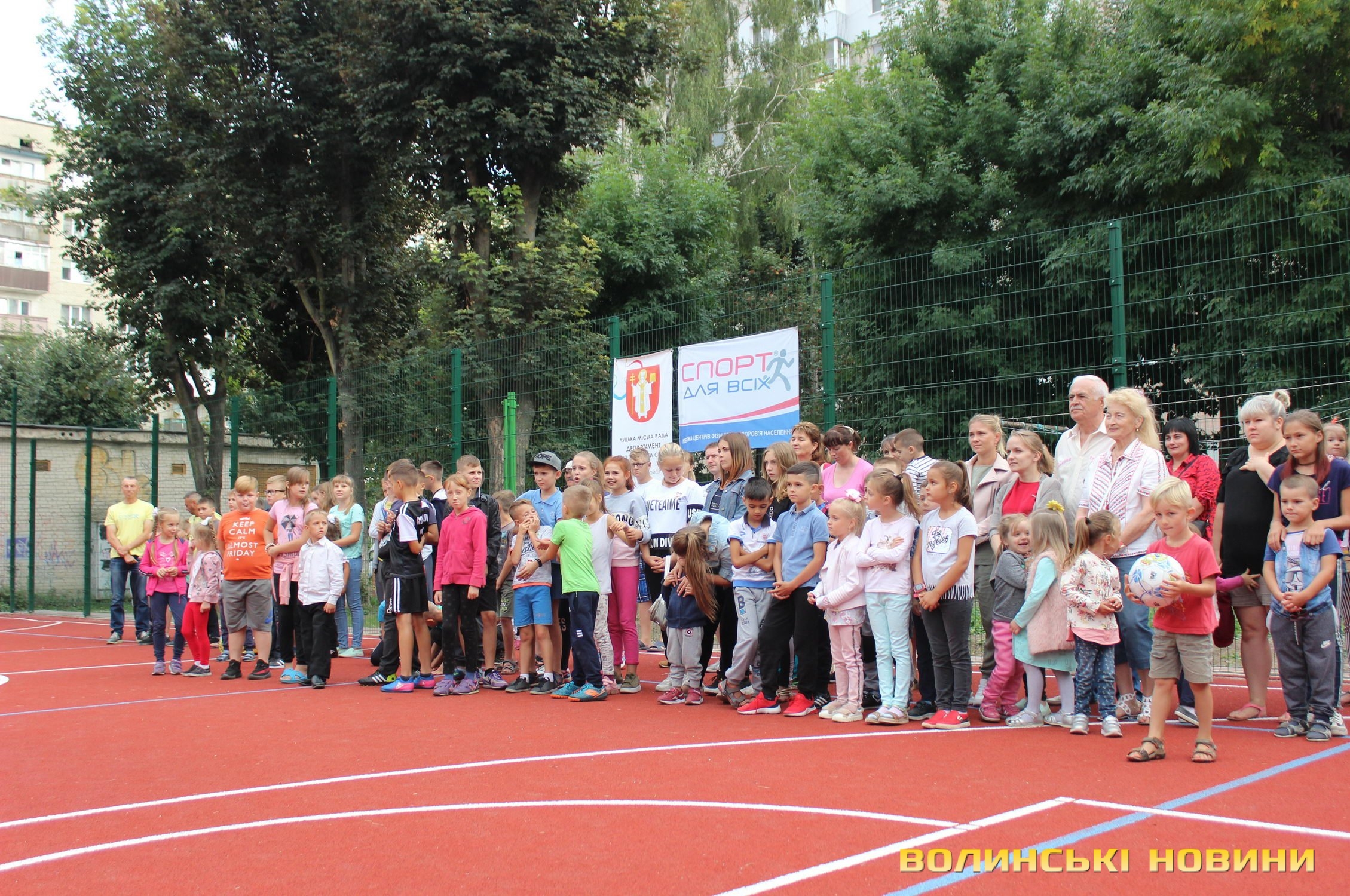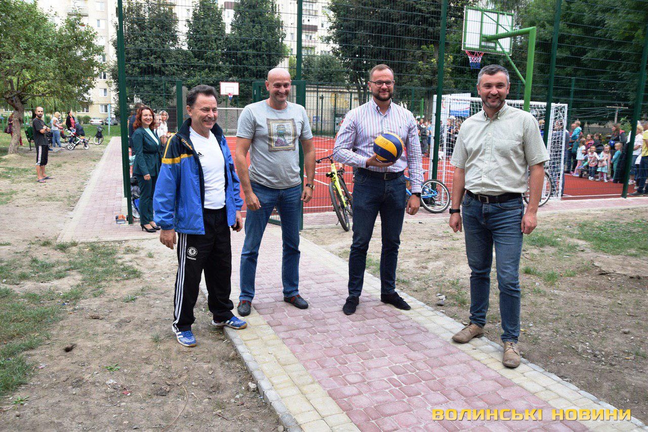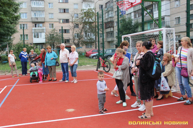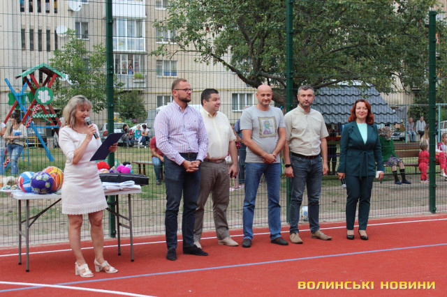 «Нарешті настав той момент, коли ми відкриваємо цей майданчик. Це перший майданчик у місті з поліуретановим покриттям. Коли ми розпочали працювати в місті, започаткували програму з будівництва спортивних майданчиків у луцьких дворах. Станом на сьогодні він уже сьомий, але перший саме з поліуретановим покриттям», – сказав Ігор Поліщук.Він звернув увагу, що раніше в місті робили майданчики зі штучною травою, де можна грати тільки у футбол. Перевага поліуретанового покриття, своєю чергою, полягає в тому, що тут можна грати і у футбол, і в баскетбол, і у волейбол.