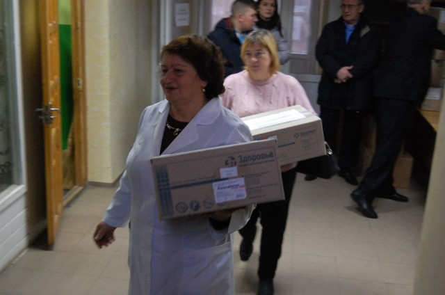 Медикаменти та медичні сумки лікарям за сприяння депутата Волинської обласної ради від УКРОПу, радника голови облради Вячеслава Рубльова передав директор комунального підприємства «Волиньфармпостач» Михайло Півнюк.
