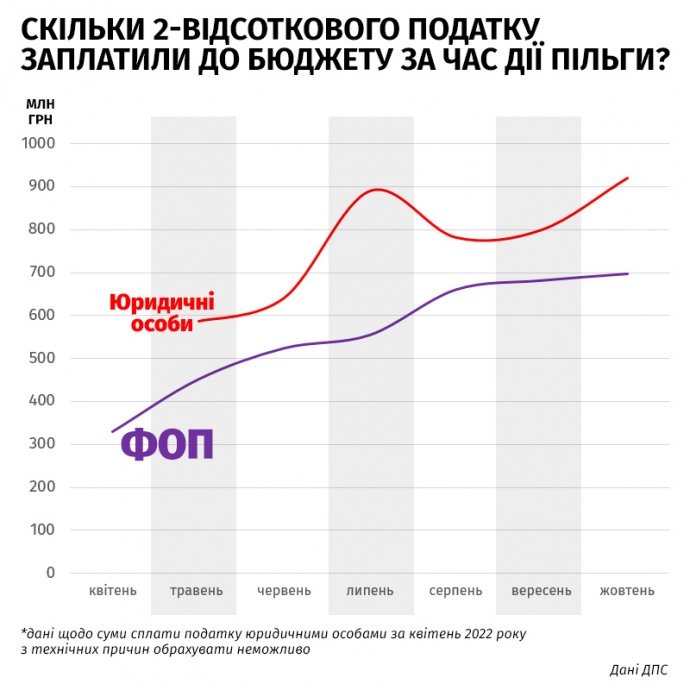 За даними ДПС, правом зменшити єдиний податок з 5% до 2% скористалися 252 тис. ФОПів – у пʼять разів більше, ніж компаній. Сума пільгового податку, який вони переказали до місцевих бюджетів, становила майже 3,9 млрд грн.