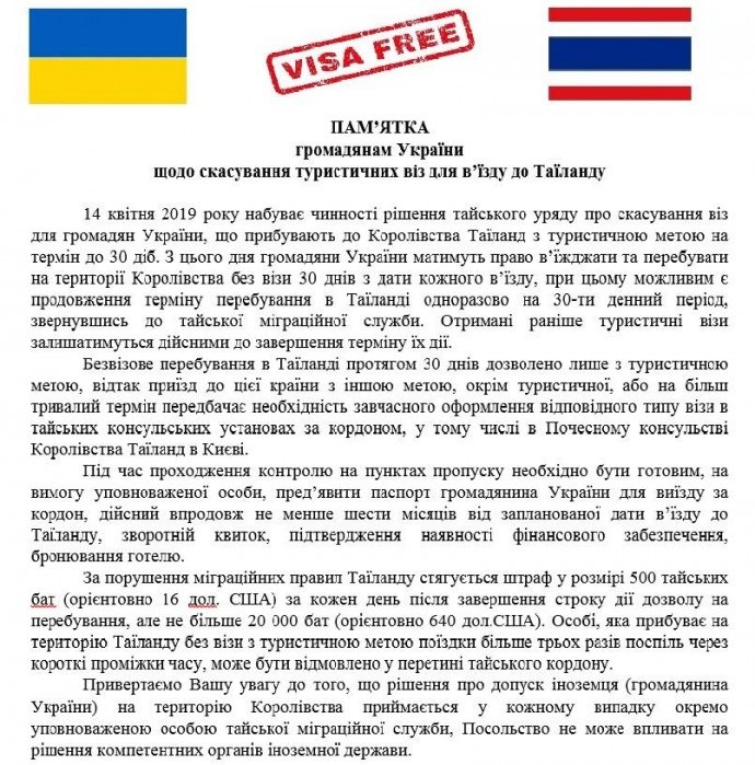 Відсьогодні громадяни України можуть подорожувати до Королівства Таїланд з туристичною метою без віз.