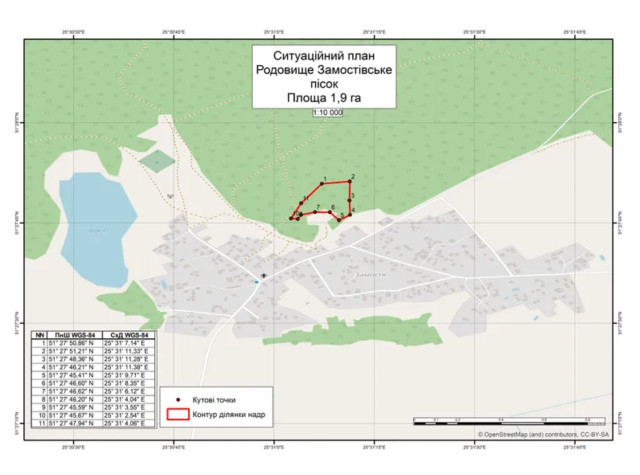 Початкова ціна продажу – 64 744 гривні.Як вказано, Замостівське родовище відкрито в 1996 році. Згідно з результатами лабораторних випробувань на території родовища, пісок придатний для благоустрою, рекультивації та планування. Гірничотехнічні умови сприятливі для розробки родовища відкритим способом. У промисловій експлуатації родовище не перебувало.
