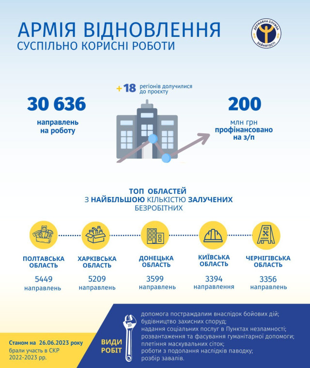 Понад 30,6 тисячі направлень на роботу до «Армію відновлення» було видано громадянам України, починаючи з 1 жовтня минулого року.