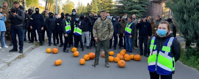 Учасники протестної акції принесли гарбузи до будинку п’ятого президента Петра Порошенка у селищі Козин на Київщині.