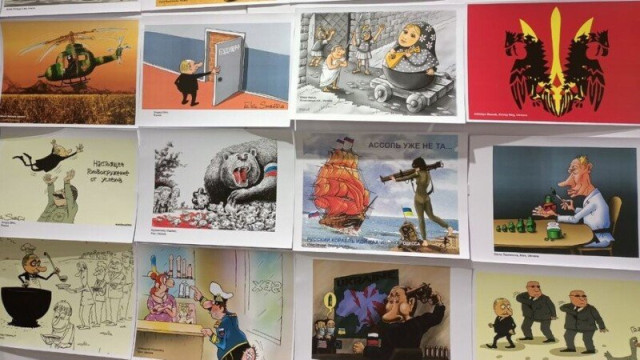 У музеї сучасного українського мистецтва відкрилася міжнародна виставка політичних та антивоєнних карикатур. Луцьк – 12-те місто, в якому презентували роботи.