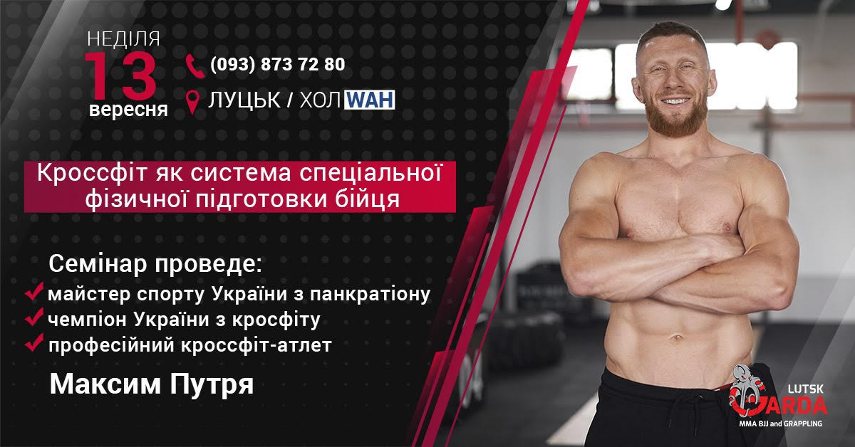 13 вересня на Волинь приїде чемпіон України з панкратіону, майстер спорту України з пакратіону, чемпіон України з crossfit та професійний кросфіт-атлет Максим Путря.