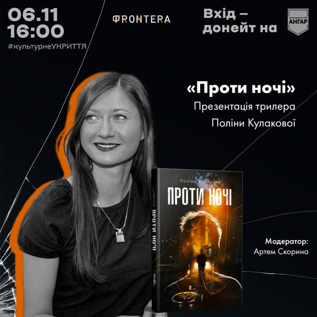 Нещодавно вийшла п’ята книга авторки «Проти ночі». Саме її вона презентуватиме у Луцьку. Захід відбудеться в Культурному укритті (вул. Яровиця, 17), початок о 16:00.