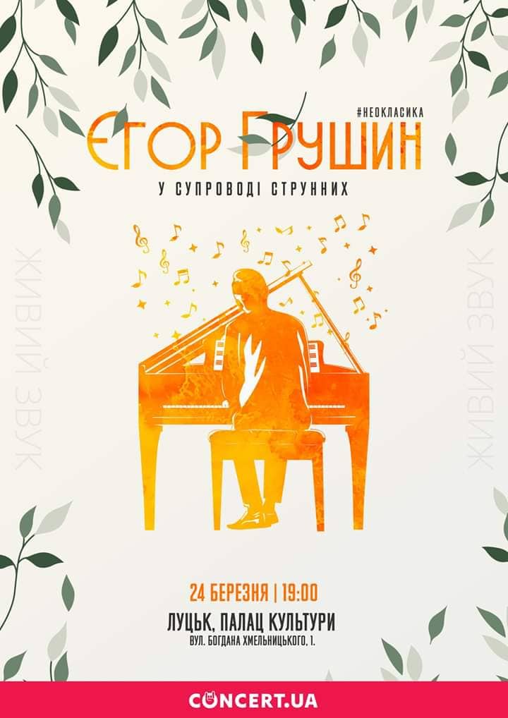 Концерт одного з найвідоміших неокласиків України Єгора Грушина відбудеться в Луцьку 24 березня.
