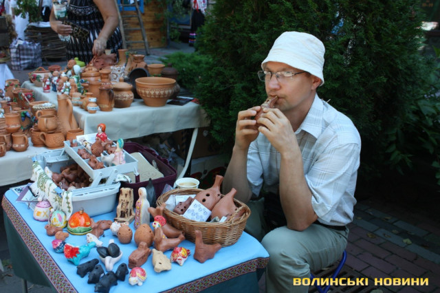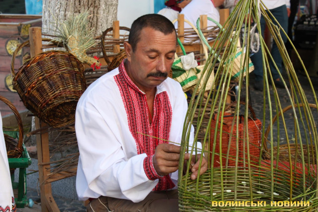 Майстер Михайло Аршулік, який приїхав разом із колективом «На подвір’ї у баби Калапуши» з Рожища, поділився, що плетінню кошиків його навчив ще батько.«Я майструю кошики на продаж, хоча був час, що не плів. Кошики плетуть зимою, зараз я роблю це для виступу. За зимовий період можу наплести більше 100 кошиків – усе залежить від погоди і здоров’я», – зазначив Михайло Аршулік.