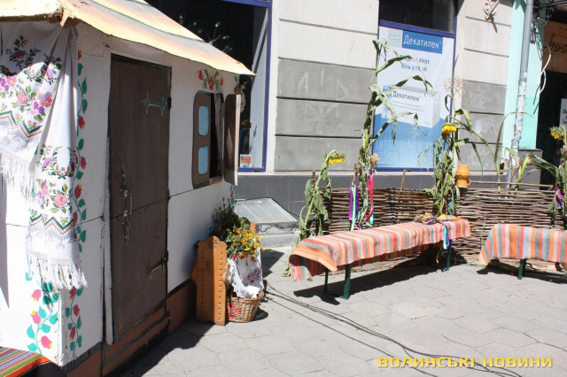 Кожен ансамбль, який представляє окремий район, облаштував на вулиці Лесі Українки власний майданчик, прикрасивши його народними виробами, квітами, фруктами чи старовинними речами побуту.
