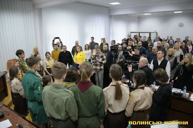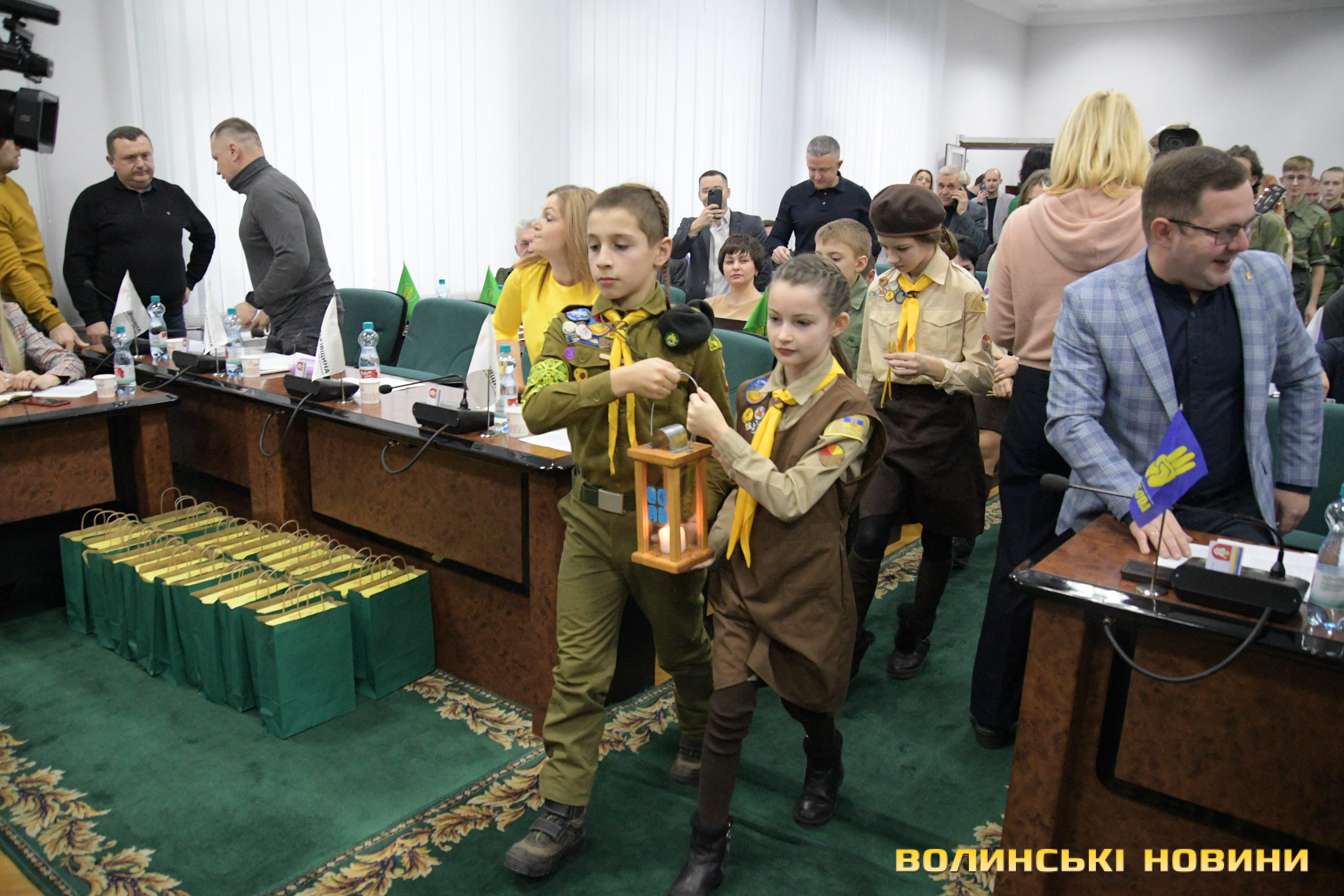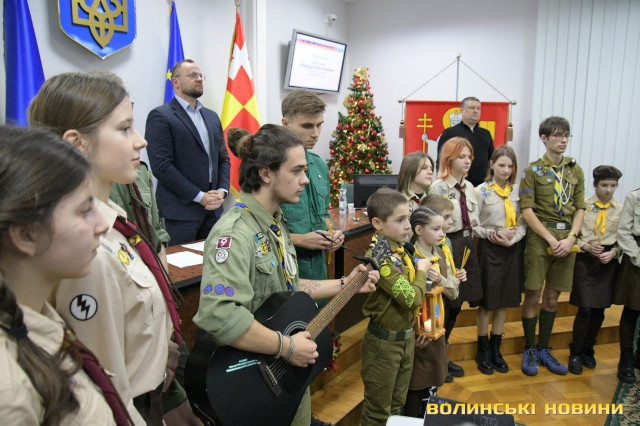 Традиційно наприкінці року до Луцької міської ради завітали діти з Національної скаутської організації «Пласт», принісши Вифлеємський вогонь миру.