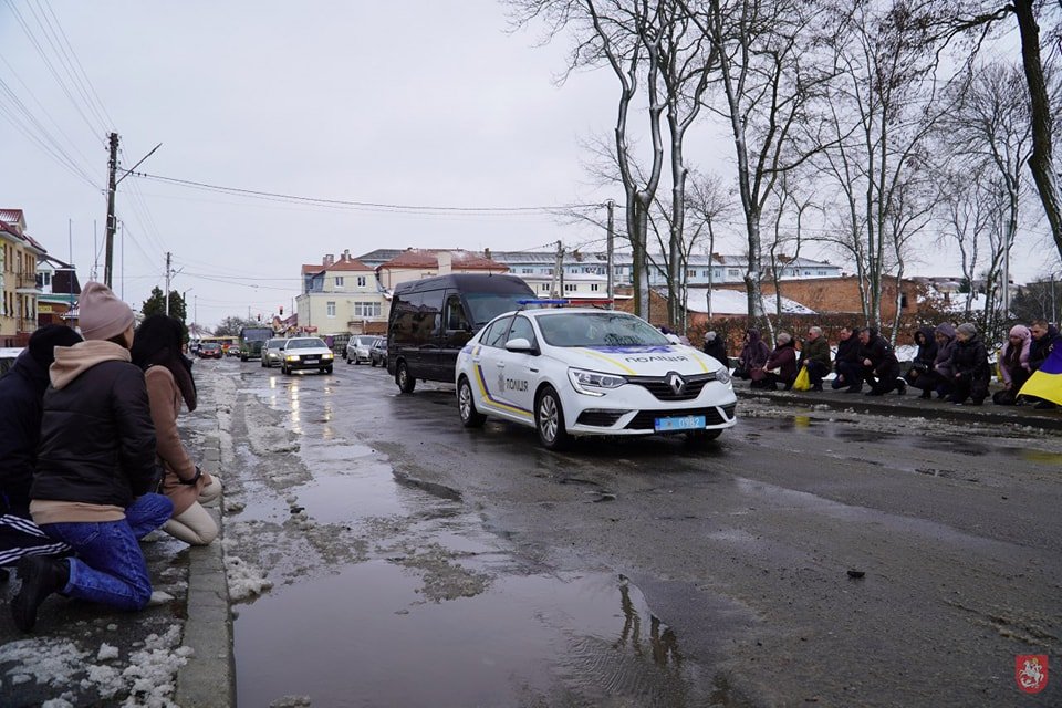 12 березня громада Володимира знову у жалобі – з синьо-жовтими прапорами та навколішки містяни зустріли полеглого у російсько-українській війні солдата Олександра Савюка.