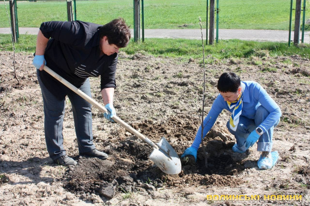 До роботи залучили депутатів: для дітей заклали яблуневий сад біля Луцька. Фото