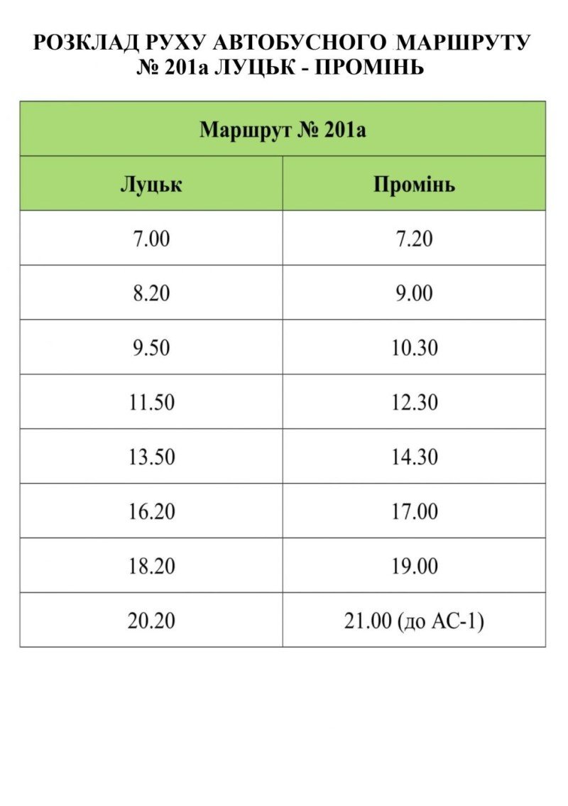 Із 20 березня до послуг промінчан маршрут №201а «Луцьк – Промінь», повідомляє сайт Боратинської сільської ради.