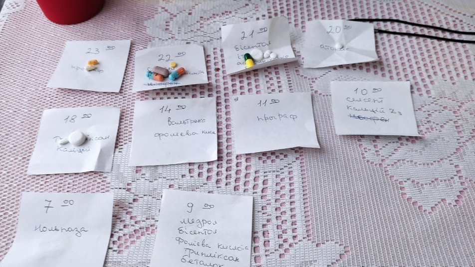 Аби не було відторгнення серця, Максим щодня приймає 14 різних препаратів, які розділені на 10 прийомів.Ліки, які щодня приймає хлопець