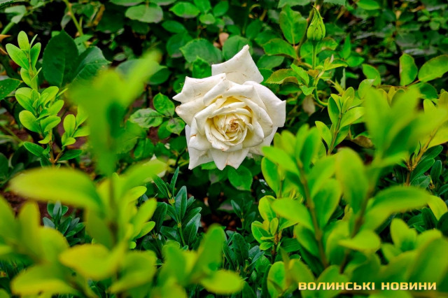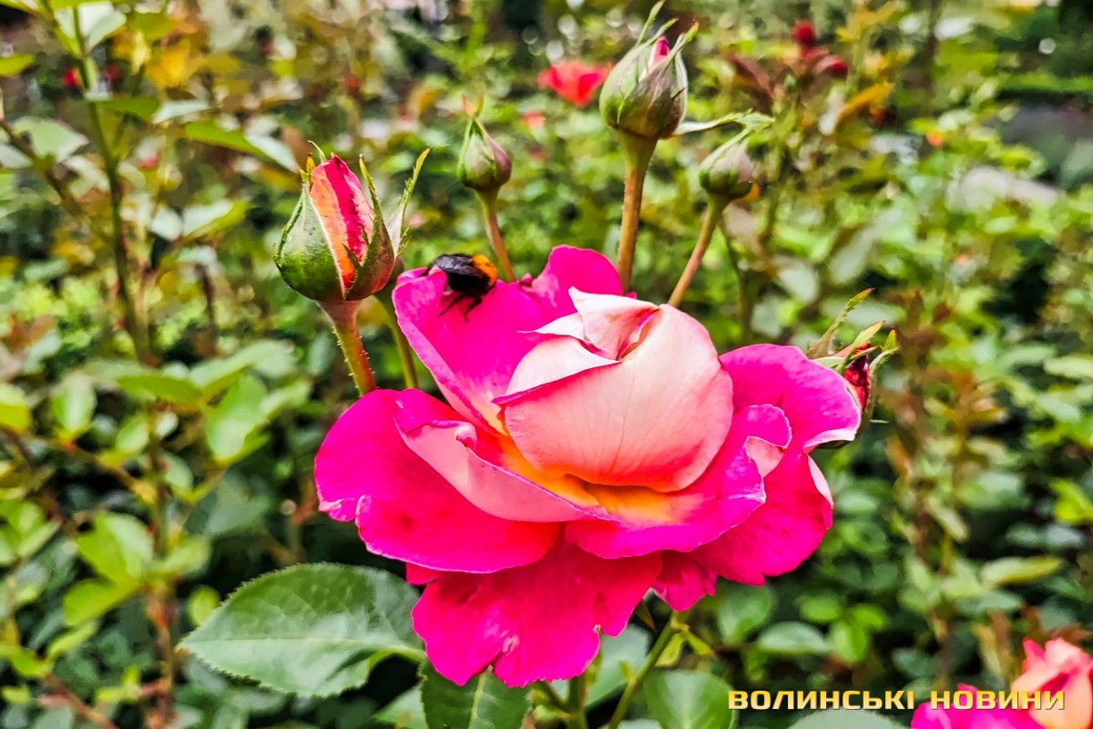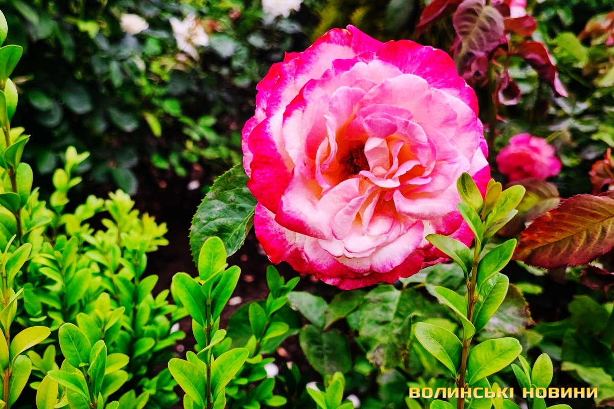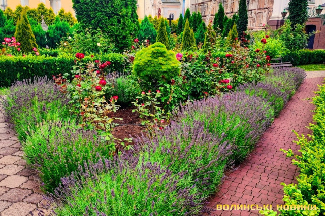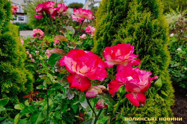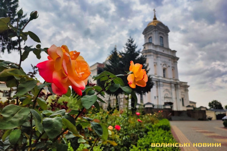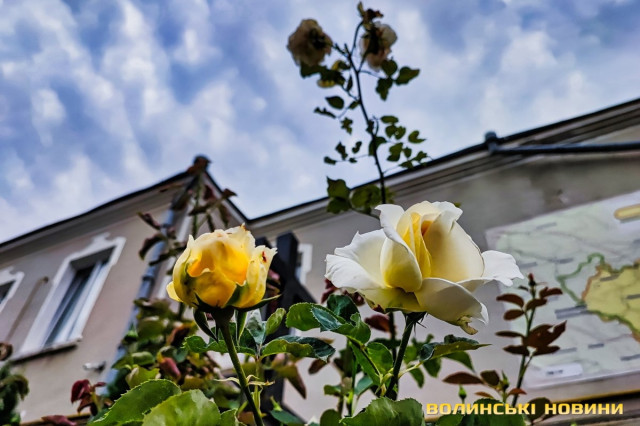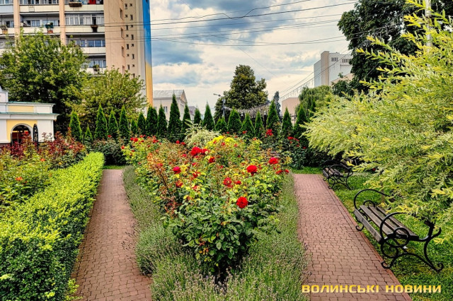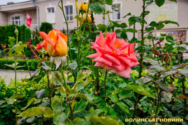 Двір кафедрального собору Святої Трійці прикрашають квітучі троянди різних кольорів. Імпровізований розарій став справжньою прикрасою центральної частини Луцька та місцем релаксу. Частина квітів була привезена з Маріуполя, який нині під окупацією.