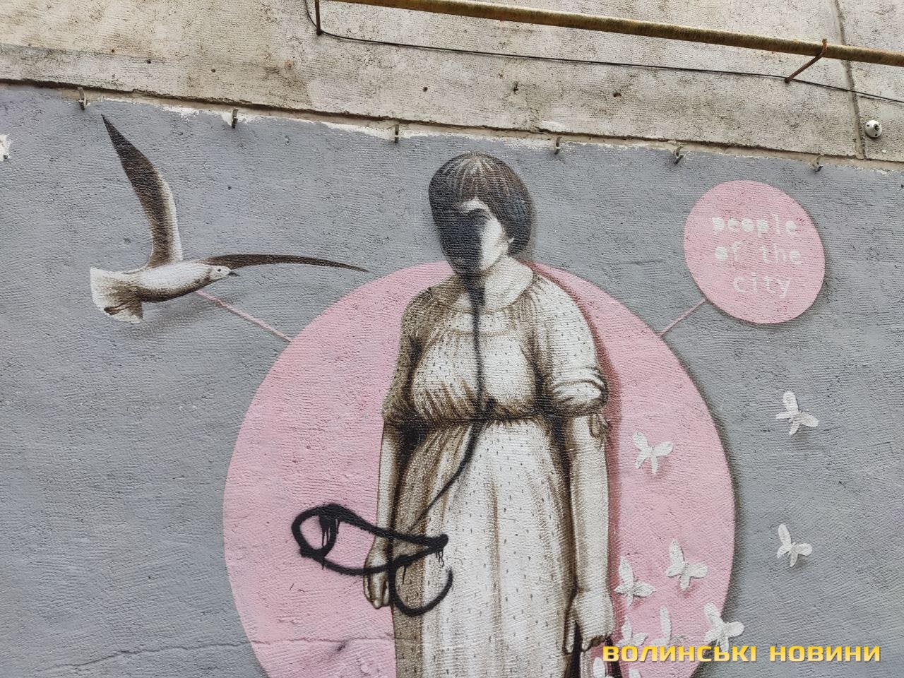 У Луцьку невідомі пошкодили мурал «Тамара з центру», що розташований у кінці пішохідної алеї на вулиці Лесі Українки. Сталося це, попередньо, увечері 6 грудня.