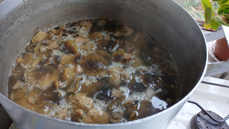 Для приготування маринованих зелениць використовують 10 літрів сирих грибів, 100 грамів солі, 200 грамів 9% оцту та 200 грамів часнику. Гриби ретельно очищають, миють і заливають водою з додаванням солі для кращого очищення. Після цього додають сіль, доводять до кипіння та варять близько 45 хвилин, постійно знімаючи піну.Після варіння до грибів додають подавлений часник і оцет, перемішують і варять ще приблизно 20 хвилин. Готові гарячі гриби розкладають у сухі стерилізовані банки та щільно закривають.