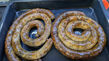 Інгредієнти традиційного рецепту печеної ковбаси:
