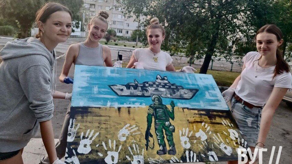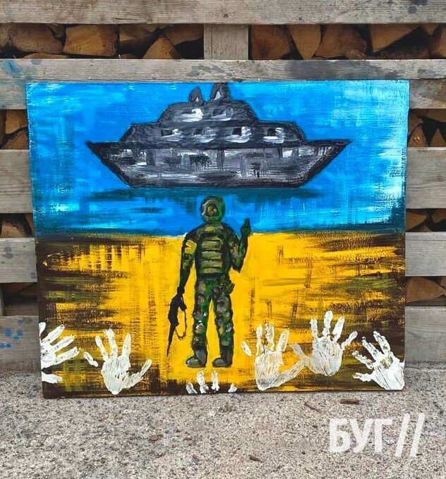 Допомога ЗСУ: на Волині випускниці намалювали картину з рускім кораблем і розіграли її в благодійній лотереї