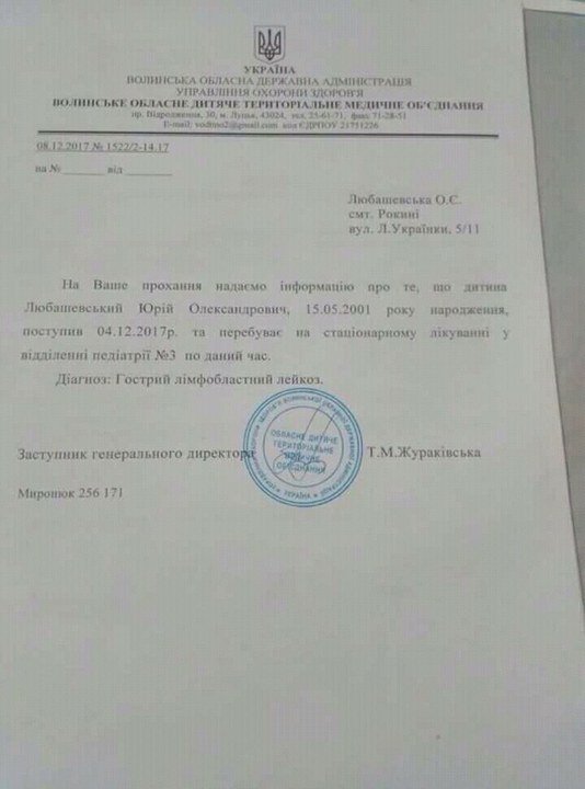 Нижче подаємо висновок лікаря і реквізити, за якими можна надсилати допомогу.